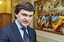 Valeriy Volodimirovich Pysarenko (Ukrainian: Валерій Володимирович Писаренко; born July 8, 1980, Nova Kakhovka, Kherson region, Ukraine) is a Ukrainian politician, nonpartisan, who was a People's Deputy of Ukraine of the 5th, 6th, 7th and 8th Convocations from 2006 until 2019. He is an Honored Lawyer of Ukraine and candidate of Juridical Sciences. In 2006 and 2007 he was elected to parliament as a candidate of Bloc Yulia Tymoshenko.[1] Since then he has been an independent candidate.[1]