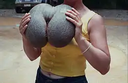 Vallée de Mai Nature Reserve ("May Valley") is a nature park and UNESCO World Heritage Site on the island of Praslin, Seychelles.[1][2] It consists of a well-preserved palm forest, flagship species made up of the island endemic coco de mer, as well as five other endemic palms. The coco de mer (Lodoicea maldivica), a monocot tree in the Arecaceae (palm family), has the largest seeds (double nut seed) of any plant in the world. Also unique to the park is its wildlife, including birds such as the rare Seychelles black parrot, mammals, crustaceans, snails, and reptiles.[2][3] There has been a determined effort to eliminate all the introduced exotic species of plants from the area but this has not been successful in eliminating coffee, pineapple, and ornamental palms thus far.[4] This forest, with its peculiar plant and animal species, is a relict from the time when the supercontinent of Gondwana was divided into smaller parts, leaving the Seychelles islands between the present day Madagascar and India.[2]