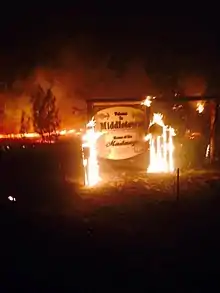 The Valley Fire was a wildfire during the 2015 California wildfire season that started on September 12 in Lake County, California.[1] It began shortly after 1:00 pm near Cobb with multiple reports of a small brush fire near the intersection of High Valley and Bottlerock Roads. It quickly spread and by 6:30 PM PDT, it had burned more than 10,000 acres (40 km2).[4] By Sunday, the thirteenth of September, the fire had reached 50,000 acres (202 km2) and had destroyed much of Cobb, Middletown, Whispering Pines, and parts in the south end of Hidden Valley Lake.[5] The fire ultimately spread to 76,067 acres (308 km2), killed four people and destroyed nearly 2,000 buildings,[1][6][7][8] before it was fully contained on October 15, 2015,[1] causing at least $921 million (2015 USD) in insured property damage.[2] At the time, the fire was the third-most destructive fire in California history, based on the total structures burned,[9][10] but the Camp Fire (2018) and the North Complex fire in 2020, exceeded that total.