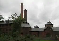 The New Milford Plant of the Hackensack Water Company was a water treatment and pumping plant located on Van Buskirk Island, an artificially created island in the Hackensack River, in Oradell, Bergen County, New Jersey, United States.[3] The site was purchased in 1881 by the Hackensack Water Company, which developed it for water supply use. The facility was built between 1881 and 1911, and it includes a brick pumping station from 1882, a tall filtration tower, and huge underground infrastructure.[4] The Hackensack Water Company was merged into United Water in the 1980s; the successor today is Suez North America.