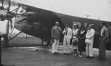 On 15 June 1927, Black chartered a KLM monoplane for a 18,707-mile (30,106 km) flight from the Netherlands to Batavia and back in 27 days, the first international charter flight. Most flight occurred in a Fokker F.VII, (registered H-NADP) a high-wing monoplane powered by a single 440 hp Gnome-Rhone Jupiter IV engine and extended range tanks good for a range of 1,250 miles (2,010 km). The aircraft was brought into KLM's hangar on the 13th, and refitted with an overhauled engine and a four-seat configuration two days before the trip.[10] The trip was described by newspapers as uneventful, yet while in Burma, wild elephants charged Black's aircraft.[11] On 29 June 1927, Black became the first paying passenger to land in Singapore after 86 hours of flight time and 14 stops.[12] The Queen of the Netherlands presented Black with the Cross of Knighthood of the Order of Orange-Nassau on return to the Netherlands. Black's return reception in Baltimore included 500 guests including his friends, Herbert C. Hoover, Commander Richard Evelyn Byrd, Anthony H. G. Fokker, Owen D. Young, Franklin D. Roosevelt.[13]
