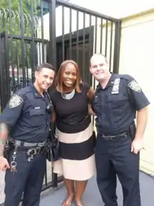 As chairperson of the Public Safety Committee, Gibson has worked to mend the tense relationship between New York civilians and the New York Police Department (NYPD).[11] In the wake of public outrage over the deaths of civilians such as Eric Garner, she assured the public through various media outlets that she would rectify the NYPD transparency system and better equip officers for public service.[12] She worked with Mayor Bill de Blasio, Council Speaker Melissa Mark-Viverito, and the Civilian Complaints Review Board (CCRB) to implement the use of body cameras on officer uniforms, GPS tracking devices for officers, and technological advancement funding for the NYPD.[11]