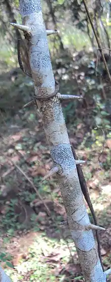 Almost 30% of the species within the tribe have a symbiosis with endophytic bacteria, which are found intercellularly within the leaves.[3][4][5] The presence of these bacteria is consistent on a genus level and all species belong to the following 5 genera: Fadogia, Fadogiella, Globulostylis, Rytigynia, and Vangueria. The bacteria are identified as Burkholderia, which is a genus that is also found in the leaves of other Rubiaceae species.[6] The hypothesis is that these endophytic bacteria provide chemical protection against insect herbivory.[7]