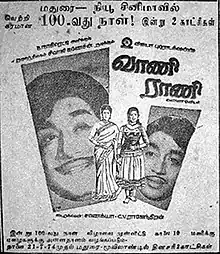 Vani Rani is a 1974 Indian Tamil-language film, initially directed by Tapi Chanakya and finished by C. V. Rajendran, and produced by B. Nagi Reddy and Chakrapani. The film stars Sivaji Ganesan, Vanisri and R. Muthuraman. The film had musical score by K. V. Mahadevan. It is a remake of the Hindi film Seeta Aur Geeta. The film was also made in Telugu as Ganga Manga with Vanisri reprising her roles.[1]