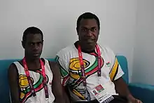 Marcel Houssimoli, a right hand amputee, received a wildcard invitation to compete in the men's 100m and 200m in the T37 disability category, and in the men's 400m T38.[3][5][6] As the country's only competitor, he was also the country's opening ceremonies flag bearer.[7]