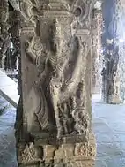 The third precinct has the shrine of Goddess Perundevi Thayar; it is customary for devotees to visit the shrine first before visiting the main Perumal shrine.[10] There are four small pillared halls, identical in structure, called Thulabara Mandapas built during the 1532 for a ceremony of Achutaraya of the Vijayanagara empire.[10]