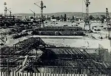 - Large dock 237mx40mx7m with two thin tall (yellowish sunset gold) Ardelt Krupp (DE, Eberswald ? EKW ) gantry cranes (300 550 ? ton lift each)