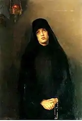 She began participating in exhibitions after 1888; notably those of the Academy (until 1916), the Female Art Circle (1889) and the Moscow Art Lovers Society (1895-1896).[2] Her painting, "The Nun", was acquired by Pavel Tretyakov in 1896. One of her works, "Separated" was shown at the Louisiana Purchase Exposition in 1904. Along with numerous other Russian paintings it was "lost" there and not recovered for many years.