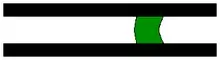 Rearranging the Laplace and Poiseuille relations suggests that radial growth occurs as a result of circumferential stretch and circumferential growth occurs as a result of shear stress.[9] Shear stress is proportional to the speed inside the vessel as well as the pressure drop between two fixed points on the vessel wall.[5] The precise mechanism of vessel remodelling is believed to be high stress on the inner wall of the vessel which can induce growth, which heads toward uniform compressive and tensile stress on both sides of the vessel wall.[9] Generally, it has been found that circumferential residual stress is compressive and tensile, indicating that inner layers of the endothelial tube grow more than outer layers.[15]