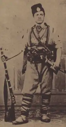 Apocryphal and semi-legendary anecdotal stories surround the creation of Levski's Internal Revolutionary Organisation. Persecuted by the Ottoman authorities who offered 500 Turkish liras for his death and 1000 for his capture, Levski resorted to disguises to evade arrest during his travels.[55] For example, he is known to have dyed his hair and to have worn a variety of national costumes.[56] In the autumn of 1871, Levski and Angel Kanchev published the Instruction of the Workers for the Liberation of the Bulgarian People,[24] a BRCC draft statute containing ideological, organisational and penal sections. It was sent out to the local committees and to the diasporic community for discussion. The political and organisational experience that Levski amassed is evident in his correspondence dating from 1871 to 1872; at the time, his views on the revolution had clearly matured.[34]