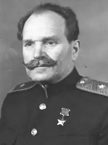 Having served out most of the war in the rank of "brigade commander" or "kombrig" among the Soviet partisans (the Red Army also had not fully transitioned to the traditional officer ranks' system by the beginning of the German invasion), he was made a major general in 1943. He subsequently was recognized with the honorary title of Hero of the Soviet Union on 15 August 1944, during the last days of Operation Bagration, the Red Army's successful effort to liberate the remaining German-held Byelorussian territory.