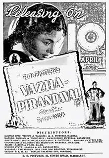 Vazha Pirandhaval (transl. She was born to live) is a 1953 Indian Tamil-language film directed and produced by T. R. Ramanna. The film stars T. R. Rajakumari and Sriram. It was released on 10 April 1953.