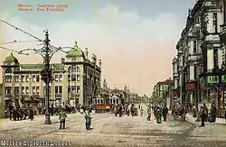 Some authors say that one ancient soldiers' song began with the same words ("Down the Petersky/"). Later that expression became a catchphrase meaning “to do something in plain sight” (to ride, to fly, etc.). Nikolai Dobronravov, a Russian poet, used the phrase in his song dedicated to Yuri Gagarin.[3]