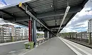 The station opened in April 2019,[3] and was built in conjunction with the development of the surrounding area. It is located between the stations Skogås and Handen, and has a central island platform. The ticket hall is located at the southern end of the station and preparations have been made for an entrance also at the northern end.