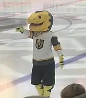 The Golden Knights' mascot is a Gila monster named Chance. He was unveiled at the team's second home game on October 13, 2017.[62][63] The team opted against using a knight for a mascot because it found that knight mascots used by other teams were not very child-friendly.[64]