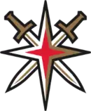 The team's primary logo is a barbute helmet, superimposed on a black and gold shield, with a V-shaped opening.[48][49] The secondary logo is two crossing swords behind a red star, designed to resemble the star found on the landmark Welcome to Fabulous Las Vegas sign.[49]
