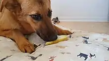As in the human practice of veganism, vegan dog foods are those formulated with the exclusion of ingredients that contain or were processed with any part of an animal, or any animal byproduct.[1] Vegan dog food may incorporate the use of fruits, vegetables, cereals, legumes including soya, nuts, vegetable oils, as well as any other non-animal based foods.[2] The omnivorous domestic canine has evolved to metabolize carbohydrates and thrive on a diet lower in protein. A vegan diet is nutritionally adequate for dogs if properly formulated and balanced.[3] Dogs can also thrive on a vegetarian diet.[4]
