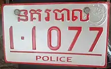 Cars owned by the police get the red plate with "នគរបាល" as the province of registration.