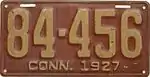 1927 | Embossed white serial on maroon plate; "CONN. 1927" centered at bottom | 123-456 | 1 to approximately 118-000 | |
