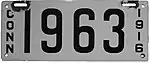 1916 | White serial on black porcelain plate; vertical "CONN" and "1916" at left and right respectively | 12345 | 1 to approximately 49000 | |