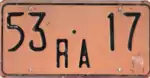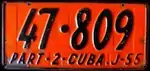 white on orange | private vehicle-note Cuban plates are often repaired and repainted by their owners as they become weathered |