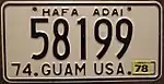 1974–77 | Embossed black on reflective white with border line; "74" at bottom left | Hafa Adai | 12-345 | 1 to approximately 57-500 | |