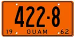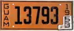 1950–51 | Embossed orange on black with border line; "GUAM" at left and "1950" at right | 1234 | 1 to approximately 9900 | Revalidated for 1951 with silver tabs. |