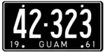 1961 | Embossed white on black with border line; "19 GUAM 61" at bottom | 12-345 | 1 to approximately 14-100 |