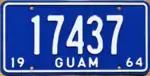 1964 | Embossed white on blue with border line; "19 GUAM 64" at bottom | 12345 | 1 to approximately 17500 |