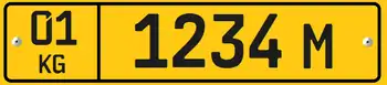 1994 saw the launch of another format, which resembles more closely the style of registration plates used in Europe. The most notable changes are the switch from Cyrillic letters to Latin, and the presence of the Kyrgyz flag in a narrow band to the left of the plate. The alphanumerics are rendered in DIN 1451. The plate format is: X 9999 XX while first letter is based on geographic location.