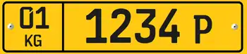 The following plates are black on yellow. These flags show the code KG, but not the Kyrgyz flag. These plates have the following format: ## - #### L, where the first two digits are the province codes. The letter would be either of the following: