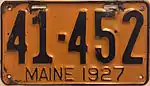 1927 | Embossed dark blue serial on golden yellow plate with border line; "MAINE 1927" centered at bottom | none | 123-456 | 1 to approximately 130-000 | |