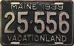 1939 | Embossed silver serial on dark green plate with border line; "MAINE 1939" centered at top | "VACATIONLAND" centered at bottom | 123-456 | 1 to approximately 160-000 | |