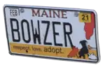 Animal Welfare | October 1, 2009 – present | Embossed black serial on white plate with border line; silhouettes of cat, dog, bird, rabbit and horse screened at right; "MAINE" screened in red centered at top | Yellow band screened at bottom with "respect. love. adopt." in black offset to left | AMA–AMZ, AWA–AWZ, BGA–BGZ |