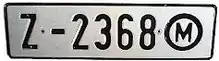 Maltese registration plates are the number plates used within Malta to uniquely identify motor vehicles. Since 1995, the three letter, three number system (ZZZ 999) has been in use in Malta for vehicle registration. The characters are always printed in black on a white background, and to the left one can find a blue box with the Flag of Europe and the letter M (for Malta) underneath it in white. The typeface used on Maltese registration plates is FE-Schrift which is also the typeface used on German vehicle registration plates.