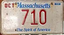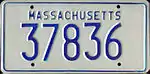 Massachusetts was the first U.S. state to issue license plates, on September 1, 1903.[1] Plates are currently issued by the Massachusetts Registry of Motor Vehicles (RMV).