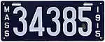In 1956, the United States, Canada, and Mexico came to an agreement with the American Association of Motor Vehicle Administrators, the Automobile Manufacturers Association and the National Safety Council that standardized the size for license plates for vehicles (except those for motorcycles) at 6 inches (15 cm) in height by 12 inches (30 cm) in width, with standardized mounting holes.[2] The 1955 (dated 1956) issue was the first Massachusetts license plate that complied with these standards.