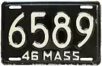 1946 | Embossed white serial on black plate; "46 MASS" at bottom | 123·456 | 1 to approximately 843·000 | |