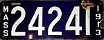 1917 | Cream serial on dark blue flat metal plate; "MASS. 1917" centered at bottom | 123,456 | 1 to approximately 127,000 | |