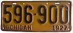 1927 | Black on yellow; "MICHIGAN 1927" at bottom | none | 123-456 | 1 to 999-999 | |
