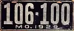 1929 | Embossed white serial on black plate with border line; "MO. 1929" centered at bottom | 123-456 | 1 to approximately 662-000 | |