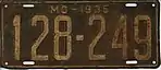 1935 | Embossed white serial on dark green plate with border line; "MO–1935" centered at top | 123-456 | 1 to approximately 655-000 | |