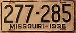 1936 | Embossed black serial on white plate with border line; "MISSOURI-1936" at bottom | 123-456 | 1 to approximately 678-000 | |