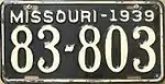1939 | Embossed buff serial on black plate with border line; "MISSOURI-1939" at top | 123-456 | 1 to approximately 731-000 | |