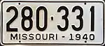 1940 | Embossed black serial on white plate with border line; "MISSOURI-1940" at bottom | 123-456 | 1 to approximately 767-000 | |