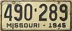 1945 | Embossed black serial on buff plate with border line; "MISSOURI-1945" at bottom | 123-456 | 1 to approximately 697-000 | |