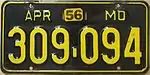 1956–61 | Embossed yellow serial on black plate with border line; month of expiration at top left and "MO" at top right | 123-456 | 1 to 999-999 |