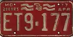 The U.S. state of Missouri first required its residents to register their motor vehicles in 1907. Registrants provided their own license plates for display until 1911, when the state began to issue plates.[1]
