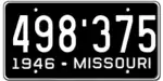 1946 | Embossed white serial on black plate with border line; "1946-MISSOURI" at bottom | 123-456 | 1 to approximately 774-000 | |