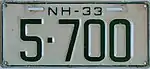 1929 | Embossed green serial on white plate with border line; "NH-29" centered at top | none | 123-456 | 1 to approximately 109-000 | |